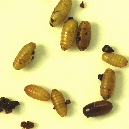.3نوچه: یکدفه که د بین زمین جای گرفت، ای کریما به شکل نوچه های بیضوی، سخت تبدیل موشن. د بین ازی پوش نوچه، پشه میوه کوینزلند جوان رشد مونه.