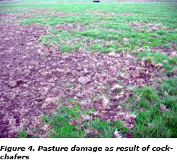 If re-sowing is delayed till the cockchafer activity ceases, the prevailing cold conditions will lead to slow pasture establishment and delayed growth for several months.