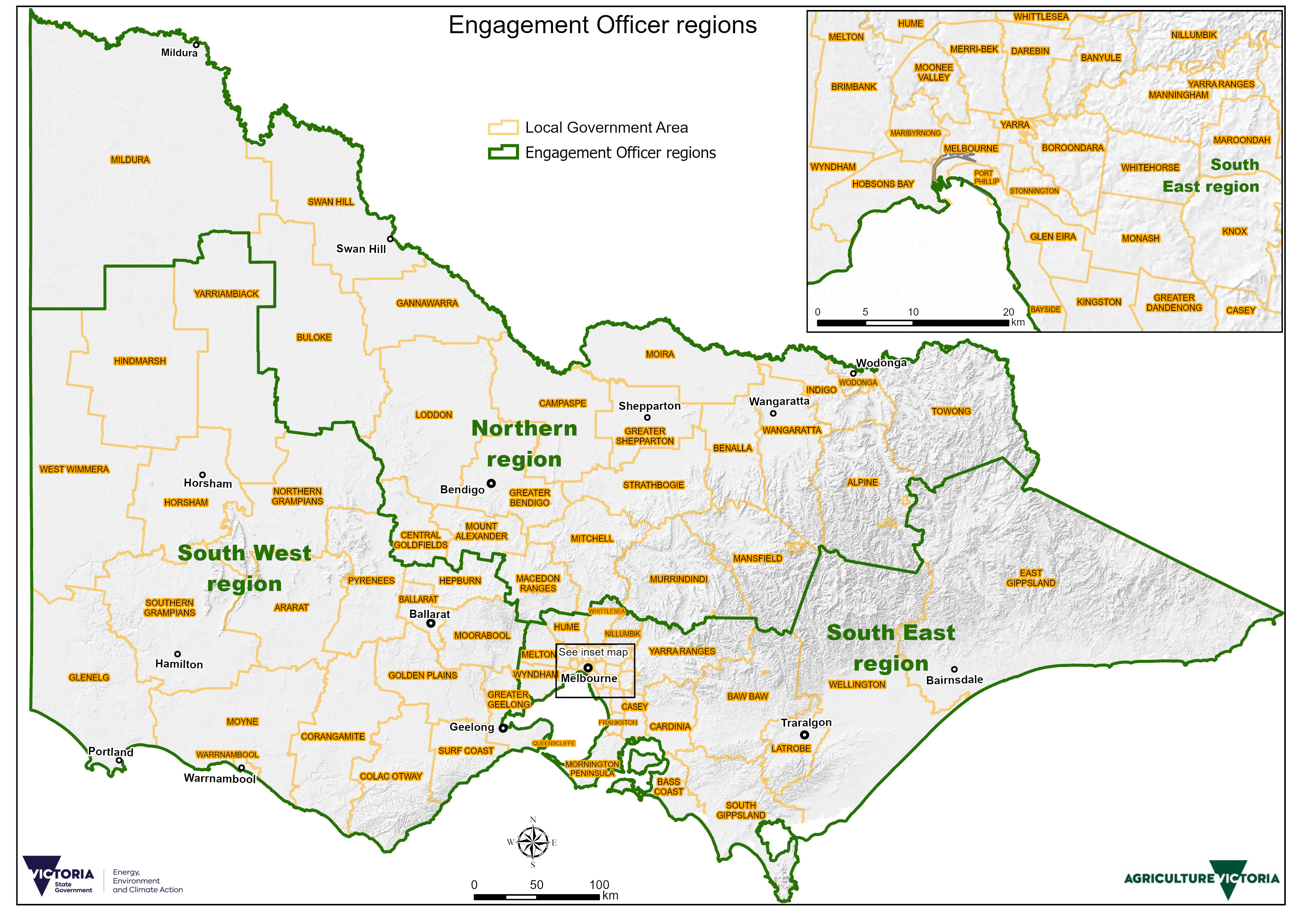 The south east region includes these local government areas: Banyule, Bass Coast, Baw Baw, Bayside, Boroondara, Brimbank, Cardinia, Casey, Darebin, East Gippsland, Frankston, Glen Eira, Greater Dandenong, Hobsons Bay, Hume, Kingston, Knox, Latrobe, Manningham, Maribyrnong, Maroondah, Melbourne, Melton, Merri-Bek, Monash, Moonee Valley, Mornington Peninsula, Nillumbik, Port Phillip, South Gippsland, Stonnington, Wellington, Whitehorse, Whittlesea, Wyndham, Yarra, Yarra Ranges.