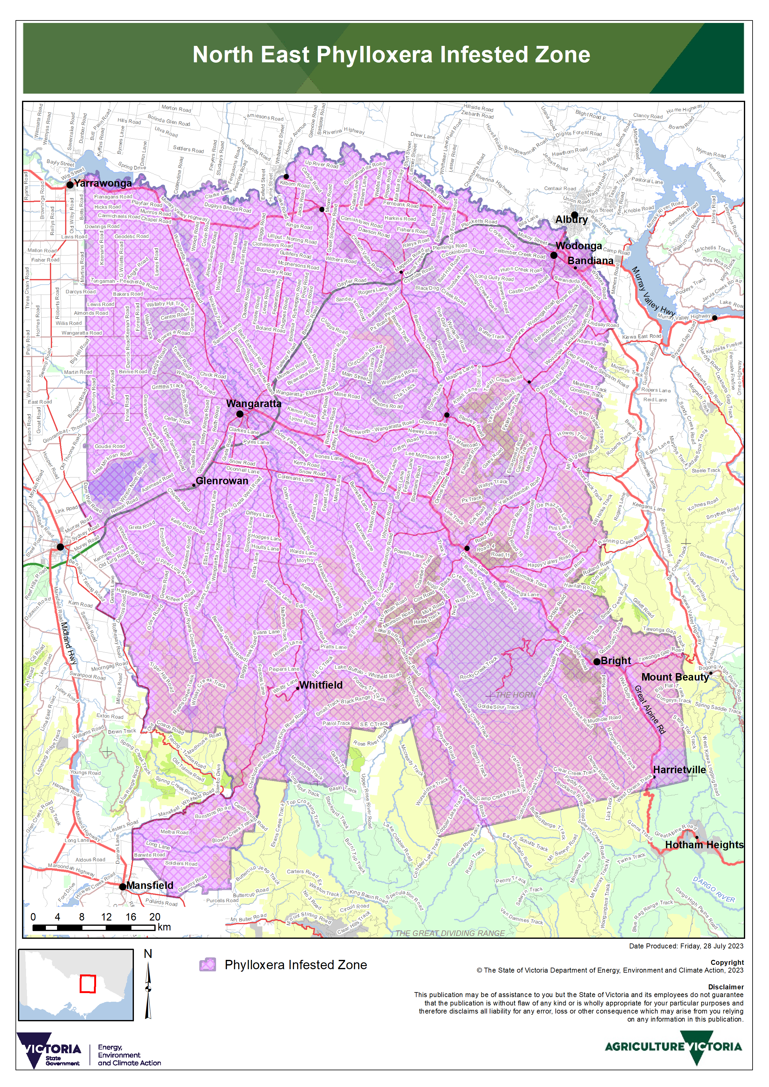To access an interactive map of phylloxera zones in Victoria, please visit the phylloxera management zones website.