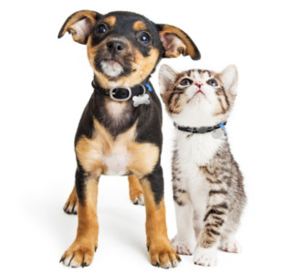 Cat and dog on laptop screen