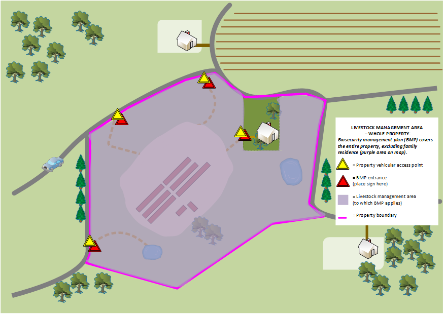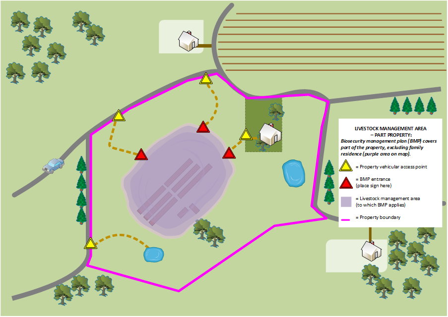 The new laws require one BMP per farm operation. Producers with farms comprising more than one property (for example, where livestock are managed on multiple properties) need to prepare only one BMP to cover all of the properties (as long as the areas and boundaries are adequately described in the BMP). If properties are added or removed from the farming operation (for example, through new agistments, leases, purchases or sales) the map or description of those in the BMP will need to be updated. In addition, compliant biosecurity signage is required at all of the areas specified in the BMP.