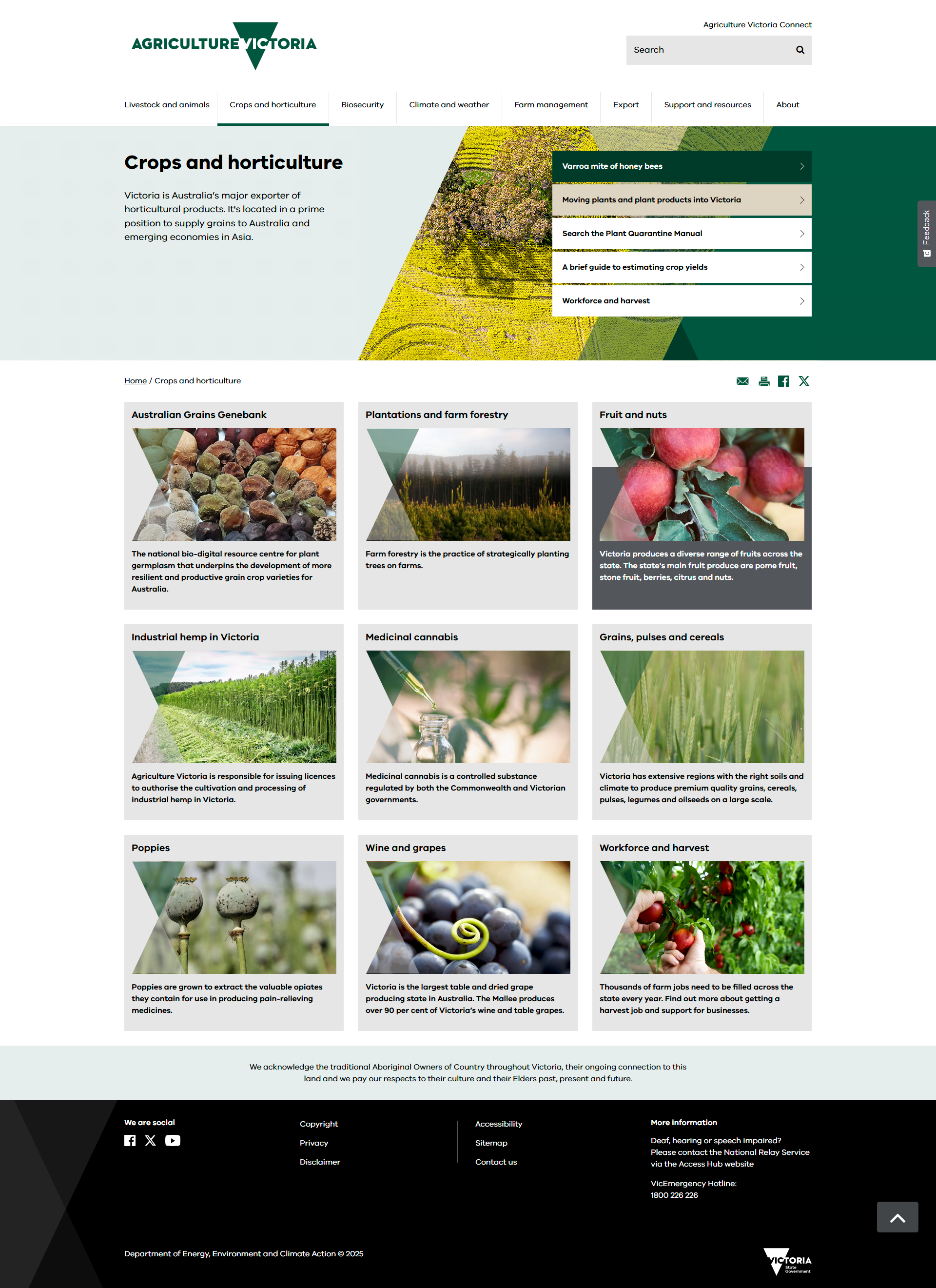 The events section lists upcoming events run by Agriculture Victoria.