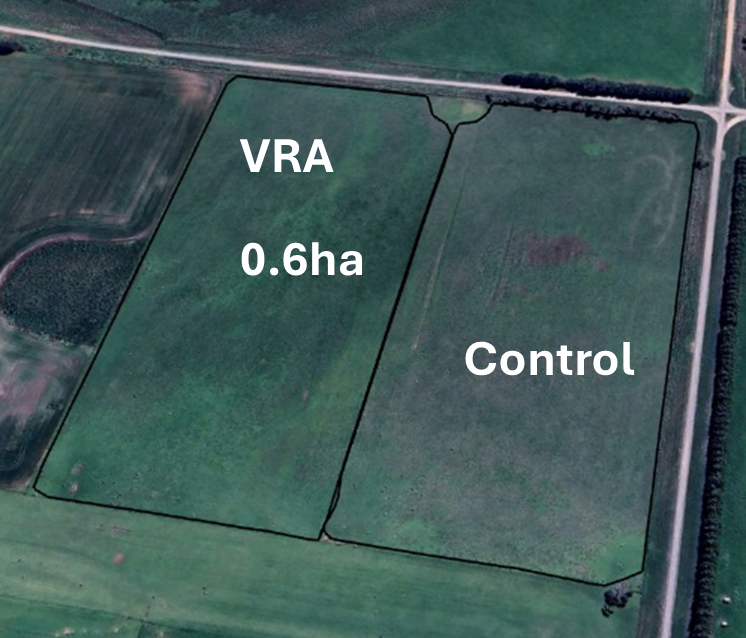 - Lime: the control received the district ‘rule of thumb’ of 2.5t/ha. The VRA paddock received a variable application calculated to pH 5.5 across the paddock, which equated to an average of 3.1t/ha.